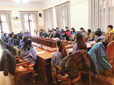 2019年的最后一天,澳门大学学生会戏剧社和澳门霜冰雪创作实验剧团的27位同学在静安区政协港澳台侨委主任张蓓、副秘书长姚建伟和管理中心主任顾闻闻的陪同下来我校华山路校区参访。上海戏剧学院副院长杨扬、港澳台办公室主任张云蕾、统战部副部长张洁和表演系西藏班的部分师生参加了本次交流接待活动。