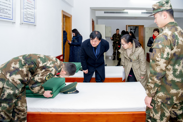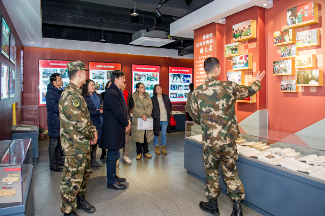 为激发党员的爱国热情,弘扬爱岗敬业的奉献精神,深化“不忘初心、牢记使命”主题教育学习,12月30日下午,我校机关第一党支部与武警上海某部第十中队,也就是我们常说的“南京路上学八连”中队开展了党建军地共建活动。机关第一党支部党员在书记韩永胜老师的带领下,跟随十中队的国旗班士兵讲解员,先后参观了中队的队史馆、雷锋班营房,观看了“学雷锋为民服务宣传片”和VR训练实景篇,也亲眼目睹了训练中的武警士兵的风采。全体党员在气势如虹的集训声中,循着八连的足迹,在一件件实物和一幅幅图片中,感受到全体官兵承载的“南京路上学八连,霓虹灯下新一代”的历史成就和光荣使命。在为了能够可以承担救灾任务中队战士写下的“血书”的照片前、在每个周日中队战士都去孤残老人家里服务甚至为其送终的照片前,机关第一支部的党员们久久不能离去,被这些和平卫士的壮举深深感动了!大家心中为人民服务的责任感和使命感也更加强烈了!