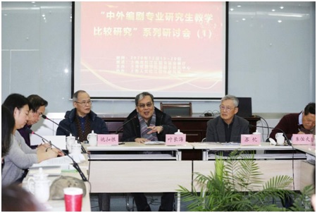 12月19日-20日,由上海戏剧学院编剧学研究中心主办,上海人文松江创作研究院协办的“中外编剧专业研究生教学比较研究”学术研讨会在松江区图书馆召开,主题聚焦中外编剧专业研究生教学,青年编剧的创作与成长路径。会议由上海戏剧学院学术委员会主任、编剧学研究中心主任陆军主持,参加会议的有上海戏剧学院中国戏剧高等研究院院长叶长海,上海市教育学会副会长、上海戏剧学院兼职教授苏忱,上海戏剧学院原科研处处长、编剧学教授、博士生导师姚扣根,上海戏曲学会常务副会长、上海师范大学二级教授朱恒夫,上海戏剧学院原党委宣传部部长、教授张生泉,上海戏剧学院戏文系副主任、编剧学教授、博士生导师徐煜,以及我校培养的部分编剧学青年学者和在校研究生。