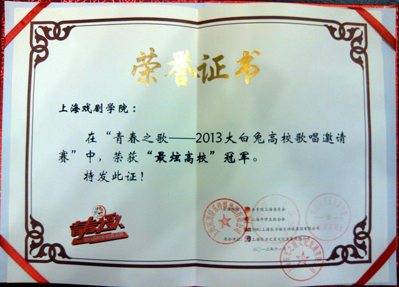 由共青团上海市委员会、上海市学生联合会主办,上海市各高校团委协办,上海广播电视台所属上海东方之星文化发展有限公司承办的《青春之歌——2013大白兔高校歌唱邀请赛》于