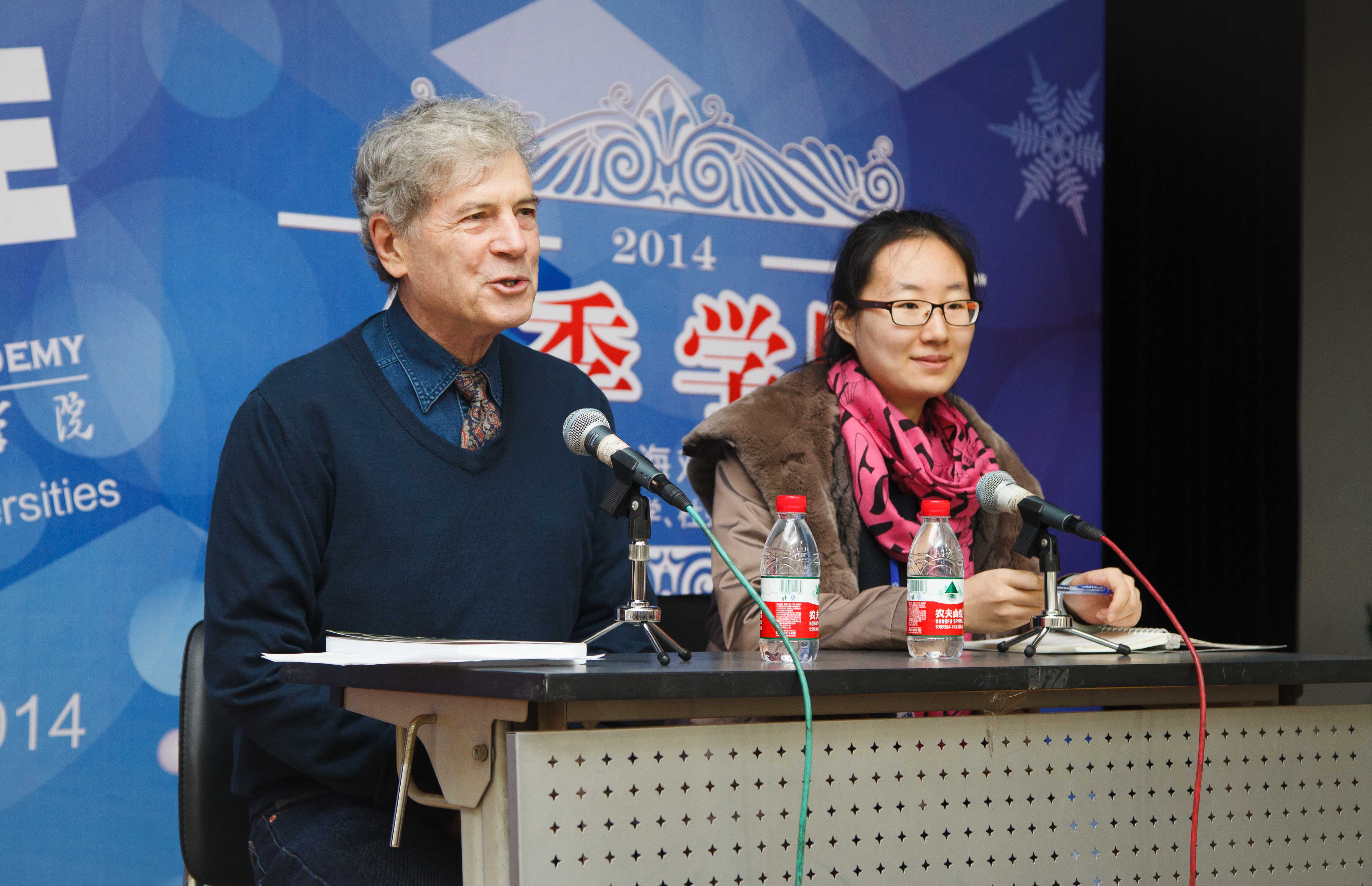 图为纽约大学教授罗伯特·兰迪开讲冬季学院第一课