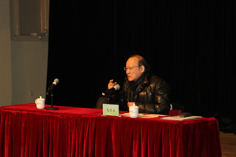 上午,学校邀请了著名文艺评论家、上海市人民政府参事毛时安研究员作形势政策报告。会议由党委书记楼巍主持。报告会上,毛时安研究员针对习近平总书记的系列讲话精神简明扼要的谈了体会,报告会紧紧围绕“怎么样看待历史和当代中国”问题为中心,依据十八大和十八届届三中全会关于文化建设的战略方针和整体布局,着重提出“中国近年来出现的种种问题,集中起来就是文化发展和繁荣的根本性问题没有得到很好的解决,归根到底是文化没有尽到应有的责任。人们质疑善的东西存在,本质上也是一个价值选择问题”。基于这个观点的提出,毛时安研究员从“为什么需要文化”、“政府与文化建设的关系”和“上海戏剧学院未来发展路径选择”三个层面逐层深入分析,同时,毛时安研究员还结合我国教育体制中现存的种种问题发表了自己的见解,激起了与会干部的思考和共鸣。