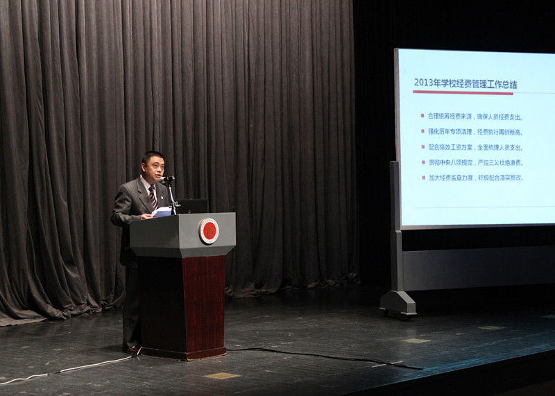 图为韩生院长作《2014年上海戏剧学院行政工作报告》