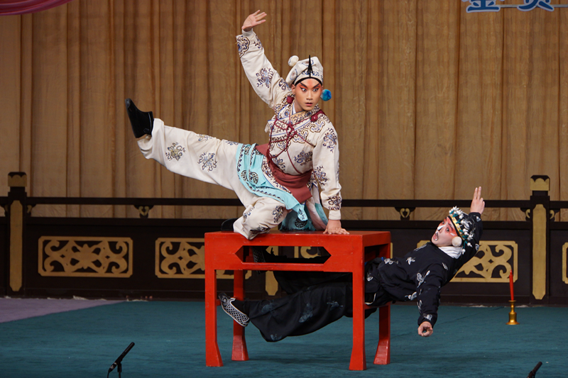 演出中还增加了“游戏”环节,由小学生代表上台向演员模仿简单的身段、技能和唱腔,这种形式活泼的互动环节使得剧场内气氛热烈,欢声笑语,掌声此起彼伏。