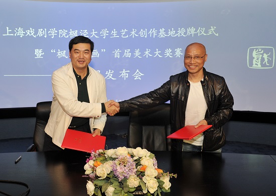 4月17日,上海戏剧学院和金山区枫泾镇人民政府本着优势互补的原则,在上戏图书馆三楼虚拟实验室召开了上海戏剧学院枫泾大学生艺术创作基地授牌仪式暨“枫泾寻画”首届美术大奖赛新闻发布会。