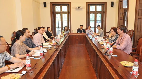 2014年5月22日,来自南加州大学戏剧学院的院长MadelinePuzo教授和国际发展部主任David Bridel教授来访我校,党委书记楼巍、院长韩生、副院长郭宇、表演系主任龙俊杰、导演系副主任韩雪松、国际交流中心主任张云蕾、研究生部副主任刘庆等领导和教师参与了本次接待。