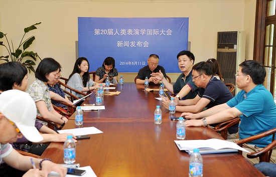 6月11日下午,第20届人类表演学国际大会(Psi 20)新闻发布会在佛西楼二楼会议室举行。我校党委书记楼巍、人类表演学教授孙惠柱、党委宣传部部长张生泉、戏文系书记沈亮、戏文系副主任彭勇文,以及十几家媒体的记者共同出席了会议。