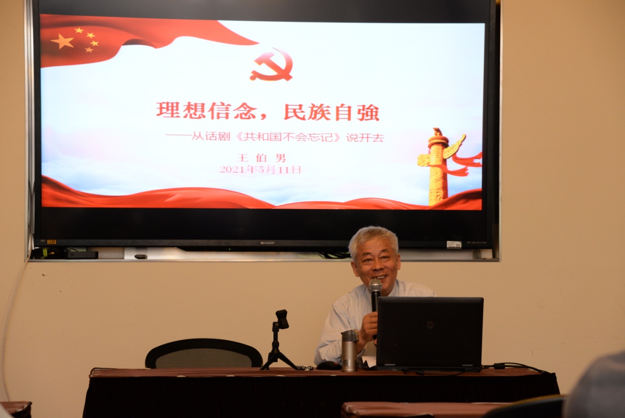 根据学校党委开展党史学习教育的工作要求,2021年5月11日上午离退休党总支在佛西楼二楼会议室,邀请离退休党总支委员、退休第七党支部书记、校图书馆原馆长王伯男教授作了题为《理想信念,民族自強》的专题党课,近八十名离退休老党员参加了党课学习。