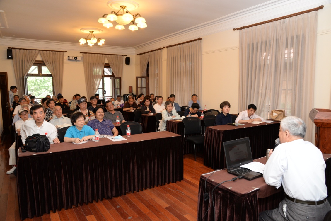王伯男教授曾经创作了《共和国不会忘记》《寻找师昌绪》《甲午祭》《东征》等话剧作品。他在创作过程中,查阅了大量的历史文献资料。党课上,他结合自身的创作经历向老党员们介绍了关于“两弹一星”科学家的名人轶事、介绍了从两次鸦片战争到中日甲午海战的历史背景和国情、介绍了中国共产党领导全国人民进行新民主主义革命的曲折历程。