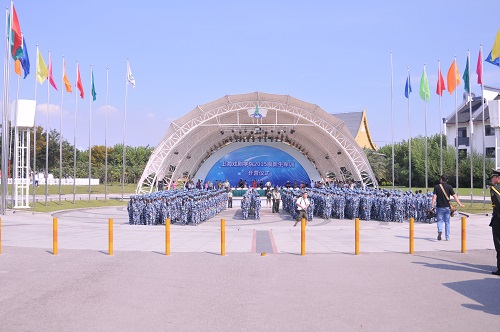 9月11日下午,我校2015级新生军训开营仪式在东方绿舟举行。副院长黄昌勇、郭宇以及学工部、保卫处、各院系领导、承训部队官兵以及450余名参训同学参加了开营仪式,开营仪式由我校武装部部长陈昌富主持。
