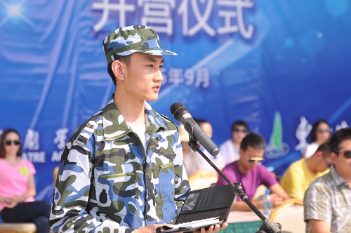 2015级电影电视学院新生胡炯升代表全体参训学生发言,他从古代君子的阳刚之气讲到华山、莲花的精神品格,他表示要和全体新生一起在军训过程中服从命令,听从指挥,克服困难,团结奋进!