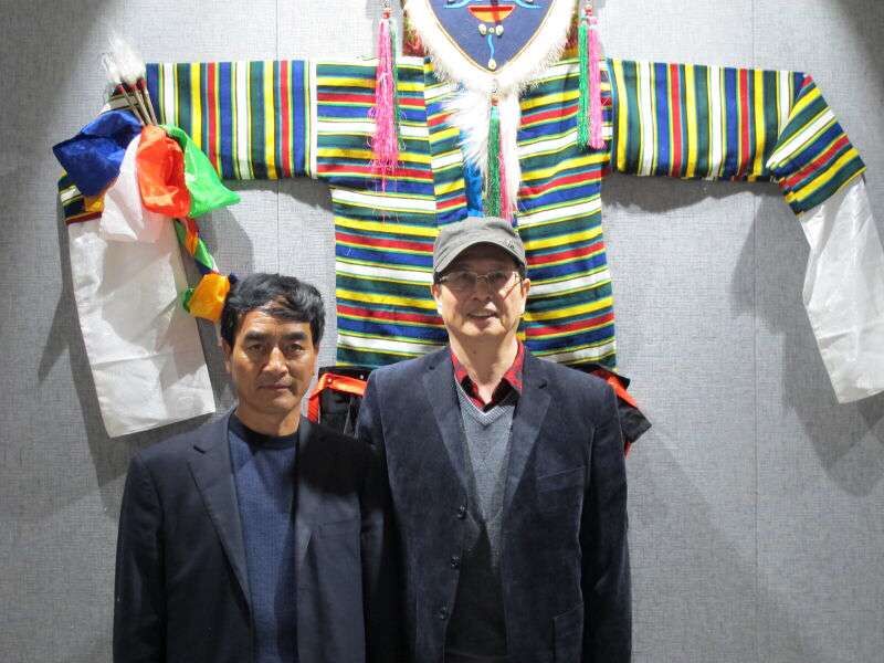 上海戏剧博物馆汤逸佩馆长与捐赠者加央益西合影