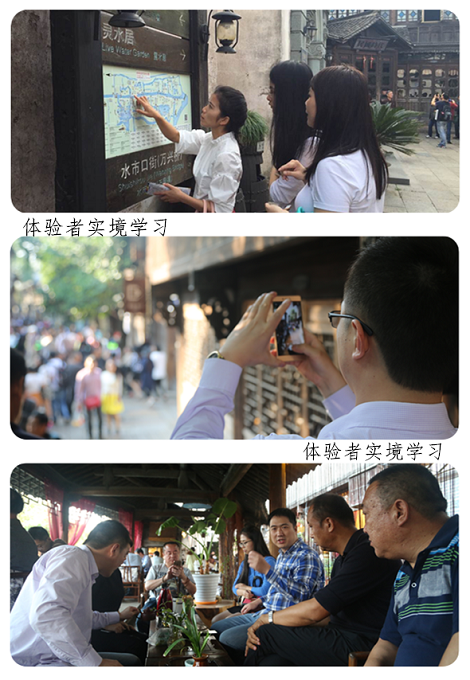 由华山创学院精心打造的多维度沉浸式“乌镇模式”体验学习是在两天的旅游中,以任务分解、自主探究、分享反思、应用演练的形式完成所有体验学员分成三组,根据图片和提示对名人故居,文化元素融入、业态布局、节庆活动、景区管理做调研,并通过访问原住民了解当地历史及整体乌镇开发历程,以阶段式任务的完成将人、景、物、游融汇于时间与空间中,充分体现沉浸式的实境学习价值所在。