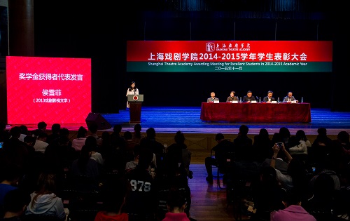 2015年11月19日下午,上海戏剧学院2014—2015学年学生表彰大会在莲花路校区白宫剧场隆重举行。校党委书记楼巍,院长韩生,党委副书记胡敏,副院长宫宝荣、张伟令出席大会并为荣获各类集体和个人奖项的学生代表颁奖,大会由党委副书记胡敏主持,学工部和各院系的领导、辅导员老师以及获奖同学在主席台下就座。