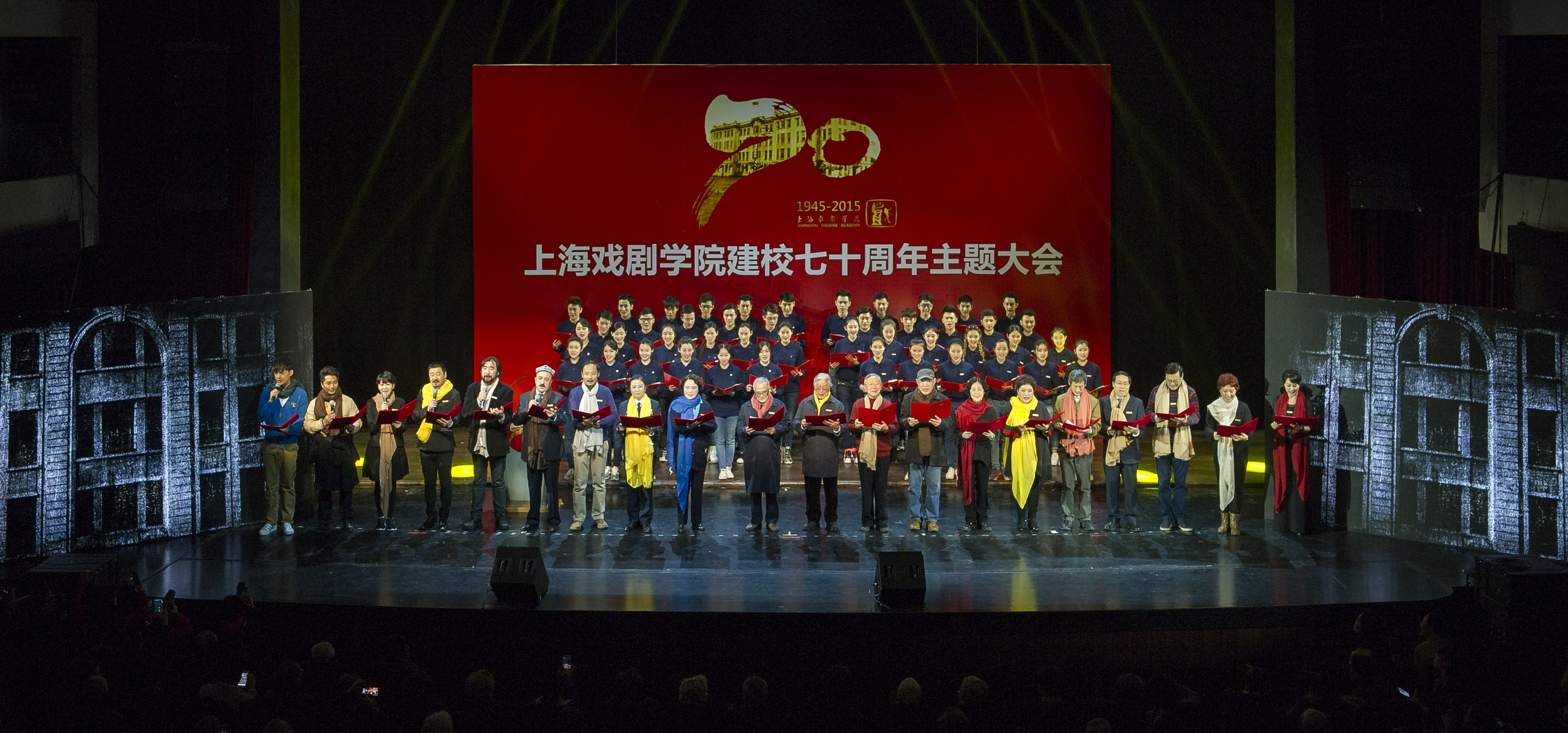 在一首集体诗朗诵《上戏,我们深深地爱着您》中,庆祝建校70周年的校庆主题大会正式拉开帷幕。大会由院长韩生主持。楼巍书记做重要讲话。校友代表徐翔、国际剧协总干事托比亚斯先后致辞。