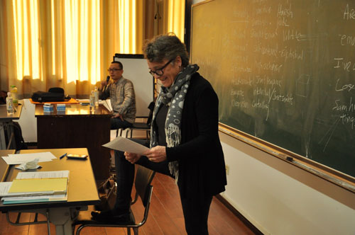图为耶鲁戏剧学院常务副院长暨耶鲁驻地剧团总经理Victoria Nolan女士为学员上课