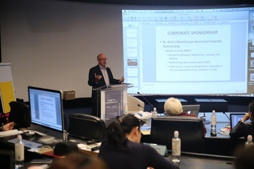 图为St. Ann’s Warehouse剧院总经理Andrew Hamingson先生为学员上课