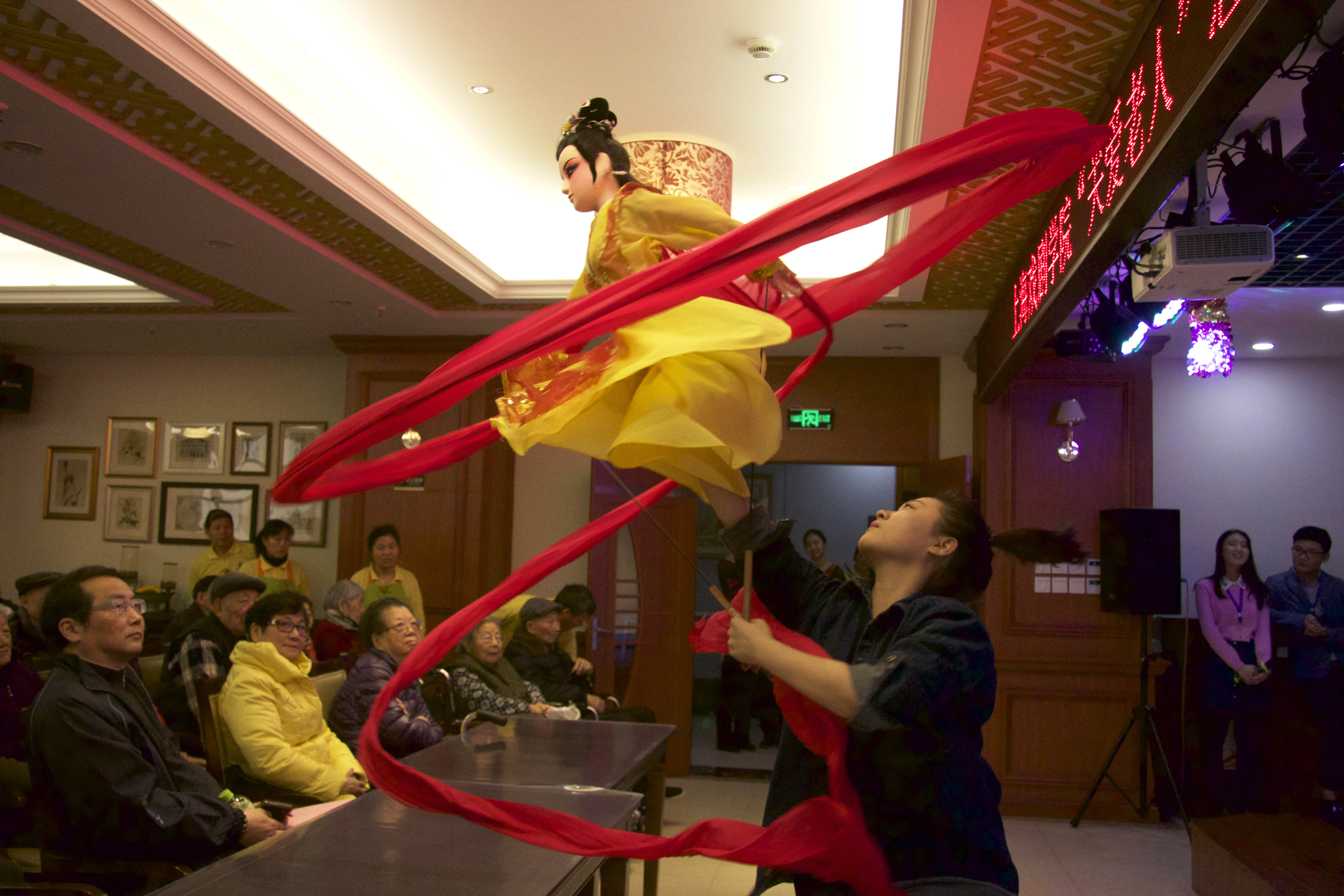 同学们的到来像冬日里的阳光,给爷爷奶奶们带去了丝丝温暖。时长一个小时的节目集合了歌曲、舞蹈、相声、戏曲、木偶等多种艺术形式。表演系薛光磊老师和14级表演系王威同学表演的相声《智取威虎山》获得了爷爷奶奶的满堂喝彩;越剧《碧玉簪·手心手背都是肉》、《沙漠王子·算命》和京剧《西施》让爷爷奶奶听得如痴如醉;《我只在乎你》、《张三的歌》、《小城故事》等经典老歌则将爷爷奶奶们带回到年轻时的青葱岁月;《秦王点兵》、《赤壁赋》等舞蹈让现场的气氛不断升温;戏曲学院邓欣欣同学带来的木偶表演《长绸舞》展现出精湛的表演技巧,博得现场的阵阵掌声,将演出活动的气氛推向了高潮,演出在欢乐明快的舞蹈《大姑娘美》的热闹氛围中落下帷幕。