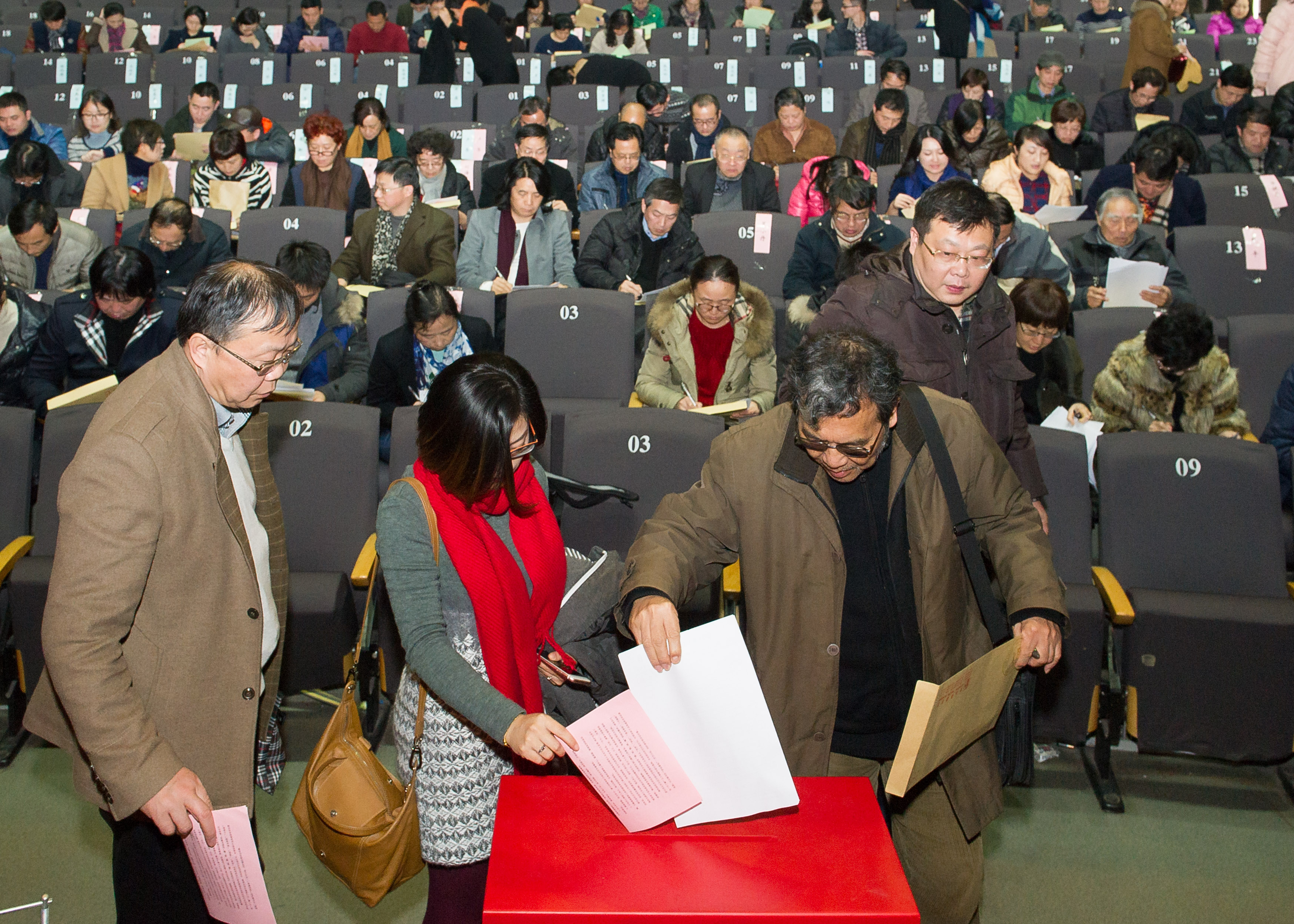 2015年12月30日下午,我校党政领导班子和领导干部年度考核民主测评会在端钧剧场召开,学校两位委员、中层干部、党代会代表、教代会代表、教授和职工代表、民主党派代表、离退休代表等150余人参加了会议。会议由党委书记楼巍同志主持。