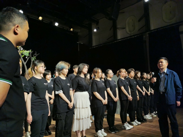 为贯彻落实学校党委关于党史学习教育、将思政教育融入专业课程的工作部署,积极推进课程思政建设、落实立德树人的根本任务,上海戏剧学院戏文系本学期将2020级戏剧影视文学专业《独幕剧写作》课程列为课程思政建设的试点。采用半命题的方式,40名“00后”围绕“红色题材”这一规定主题,以真诚的态度和年轻的视角写下了他们创作生涯中的第一个革命历史作品,阐释了他们眼中的“红色”精神。该课程于2021年5月18日下午在新空间剧场面向全校师生举办了一场课程思政展示课,选取了其中六篇有代表性的独幕剧作品以剧本朗读的形式予以舞台呈现,以此作为教学成果展示,同时也是对中国共产党成立一百周年的致敬与精神赓续。上海戏剧学院副院长唐立兔、戏文系党支部书记张璟、戏文系主任陈军等院系领导出席了此次展示课。