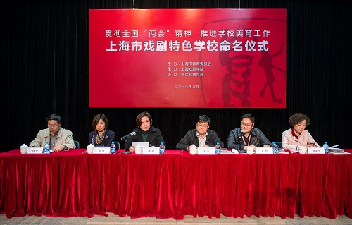 3月18日,上海市特色戏剧学校命名仪式在上海戏剧学院隆重举行,北虹高级中学、松江二中等首批17所高中戏剧特色学校与上海戏剧学院签约共建。上海市教委副主任王平、上海戏剧学院党委副书记胡敏、各区县教育局领导、17所高中校领导和艺术教师,以及大学生志愿者代表和媒体记者代表共同出席。活动由上海市教委体卫艺科处处长丁力主持。