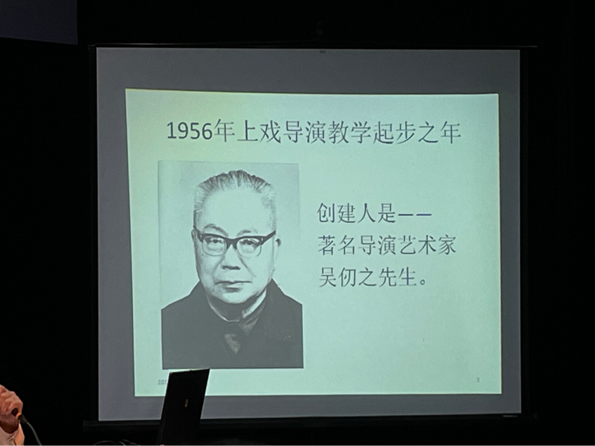 接着他从国内外导演学的发展过程开始阐述,特别提到上个世纪五十年代中国导演学的开端。结合讲座主题,张老师重点讲述了上戏导演学科的建设历程:上戏的导演学科起步于1956年开办的首个戏剧导演进修班。通过对学科创建人吴仞之先生在特殊时代背景下承接培养戏曲导演任务等回忆,张仲年老师提出上戏导演学科建设的特别之处,并具体总结为五个特色:中西方文化兼容;编导合一;师生结合,以整理创作戏曲传统剧目为特点的导演创作教学;大量的演出观摩与讨论研究;著名表演艺术家的言传身教。