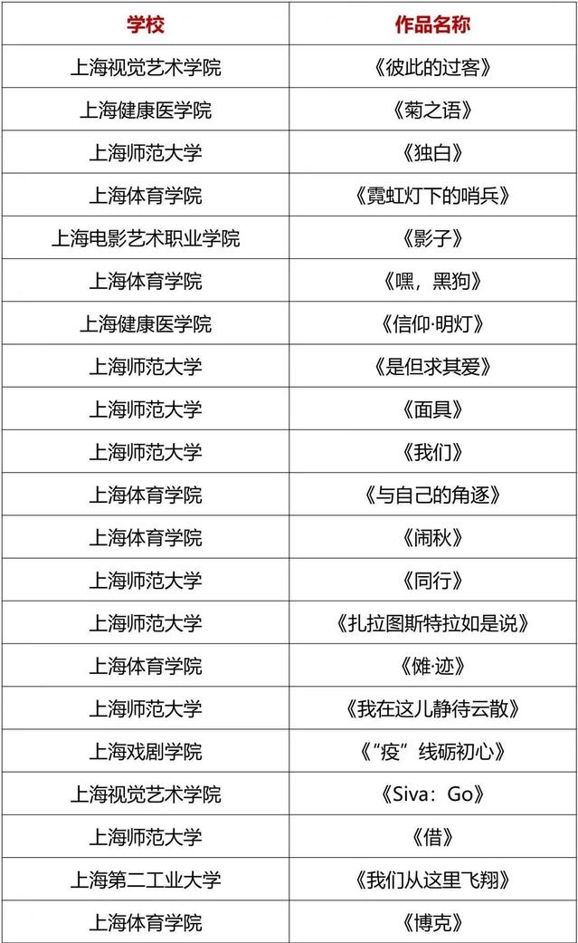 第六届“汇创青春—上海大学生文化创意作品展示活动戏剧舞蹈类优秀作品展演”,由中共上海市教育卫生工作委员会、上海市教育委员会主办。上海戏剧学院教务处统筹协调,各大高校积极参与,发掘了许多有创意、有思想、有内涵,展现当代大学生风采的优秀作品。经过层层评审,最终评出获奖作品一等奖16部、二等奖30部、三等奖44部。