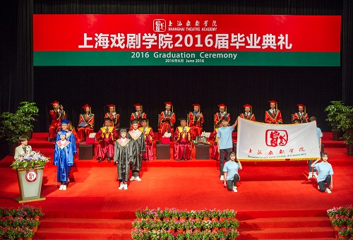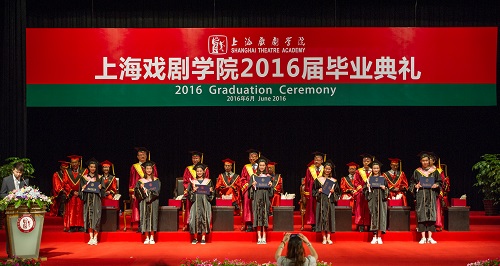 “我们成长于上戏,成就于未来,承载着上戏精神,担负着时代使命。坚持艺术理想、坚守审美品格,严肃求真、创造至美,服务人民、德艺双修,为文化大发展、大繁荣而努力奋斗!”6月23日上午9时,上海戏剧学院2016届毕业典礼在上戏实验剧院隆重举行。500多名毕业生全体起立,举起右拳,面向校旗庄严宣誓,表达励志感恩的毕业情怀。