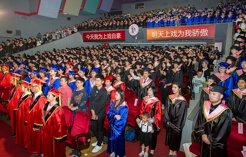校领导楼巍、胡敏、黄昌勇、宫宝荣、张伟令、郭宇、张佳春,各院系领导和学校主要职能部门负责人在主席台就座。教师代表、家长代表同所有毕业生共同参加典礼。典礼由党委副书记胡敏主持。