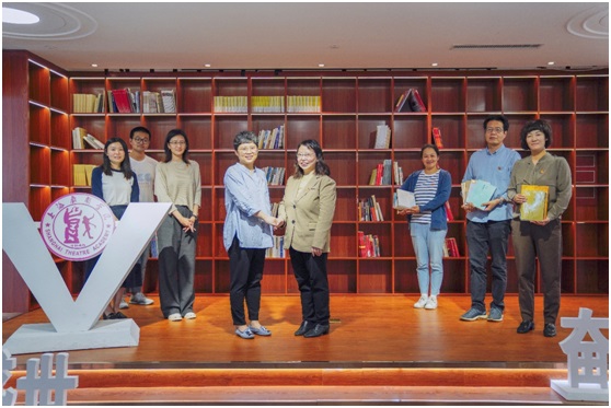 随后,两校二级院系党组织代表又来到佛西书院。去年,国戏国交系党总支访问佛西书院时,听说这里的书籍都采用捐赠制,当即表示将把该系教师编写的部分教材捐赠给佛西书院。此次,国交系党总支正式向佛西书院捐赠了包括教材在内的一批书籍。