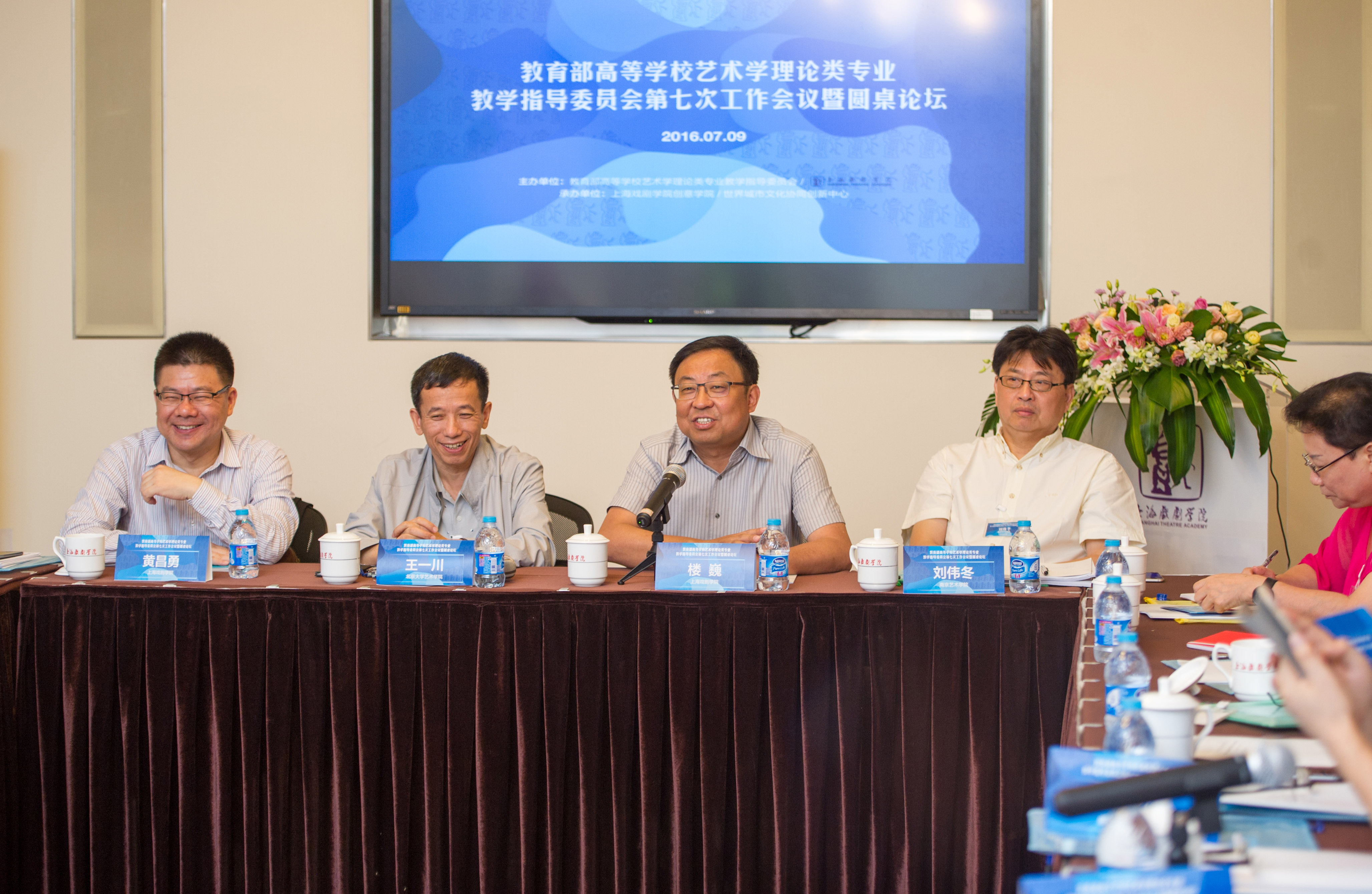 7月9日,教育部高等学校艺术学理论类专业教学指导委员会第七次工作会议暨圆桌论坛在我校佛西楼召开。校党委楼巍书记代表学校致欢迎辞,副院长、教育部高等学校艺术学理论类专业教学指导委员会副主任委员黄昌勇教授主持开幕式,会议邀请了北京大学艺术学院院长、教育部高等学校艺术学理论类专业教学指导委员会主任委员王一川教授,南京艺术学院院长、教育部高等学校艺术学理论类专业教学指导委员会副主任委员刘伟冬教授,上海戏剧学院原副院长孙惠柱教授分别做开幕式主题演讲。