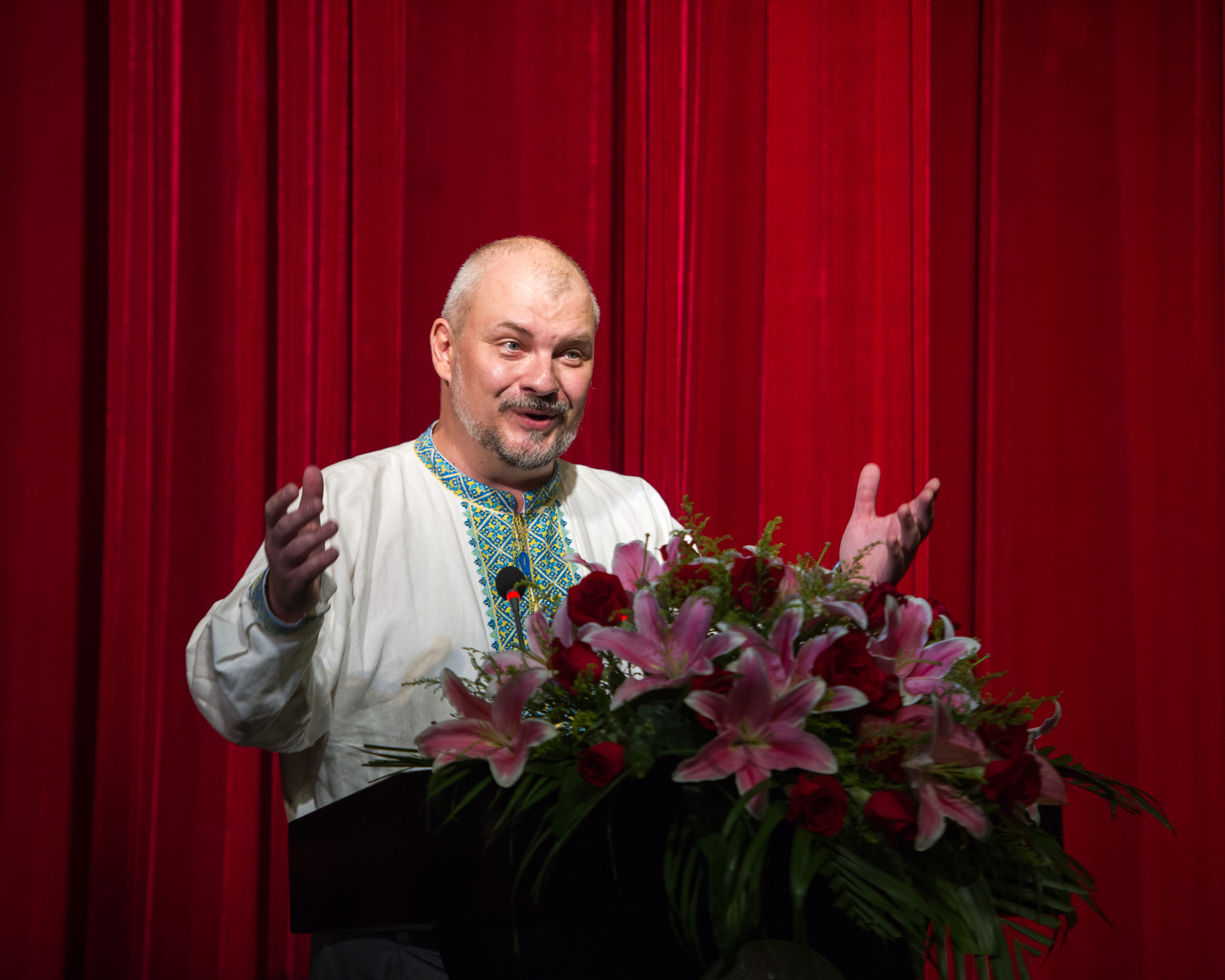 来自乌克兰皮诺佛伦尼亚剧团的戏剧同仁代表参展剧团发言,他表示乌克兰皮诺佛伦尼亚剧团能来参加本次展演本身就是个奇迹。乌克兰现在的时局并不稳定,所有人关心的都是政局形势,但他们依旧在关注戏剧。艺术在动荡的乌克兰依旧占有一席之地,这本身就是一个奇迹。而且像皮诺佛伦尼亚剧团这样一个来自基辅的小型独立剧团,面对资金、人手的缺乏,依旧致力于坚持排演像莎士比亚、王尔德这样的经典戏剧作品,就像莎士比亚笔下描述人类在极端困难的情况下仍然拥有美好的内心一样。同时,他十分感谢能有这样一次机会能来到本次展演,能进一步了解中国博大精深的历史文化,为两国的文化交流做出一点贡献。