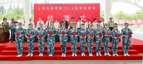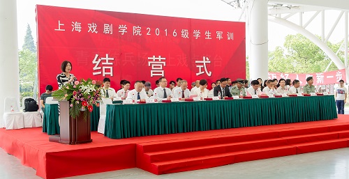 影视学院16级播音与主持艺术专业的常瀚月同学作为优秀学员上台发言,他与大家共同回顾了这八天的艰苦训练,她说军训是大学生活的第一课,教她学会了收起锋芒,融入集体,并相信这份记忆将成为人生最宝贵的精神财富。副院长张伟令在讲话中首先肯定了同学们八天的受训成果,他说,军训时间虽然短暂但意义深远,2016年是中国共产党建党95周年,也是中国工农红军长征胜利80周年,他希望同学们能够继承军队的优良传统,把正直、忠诚、坚毅、奉献等优良品格意志,一直延续下去,并在追求艺术理想的道路上勇往直前!