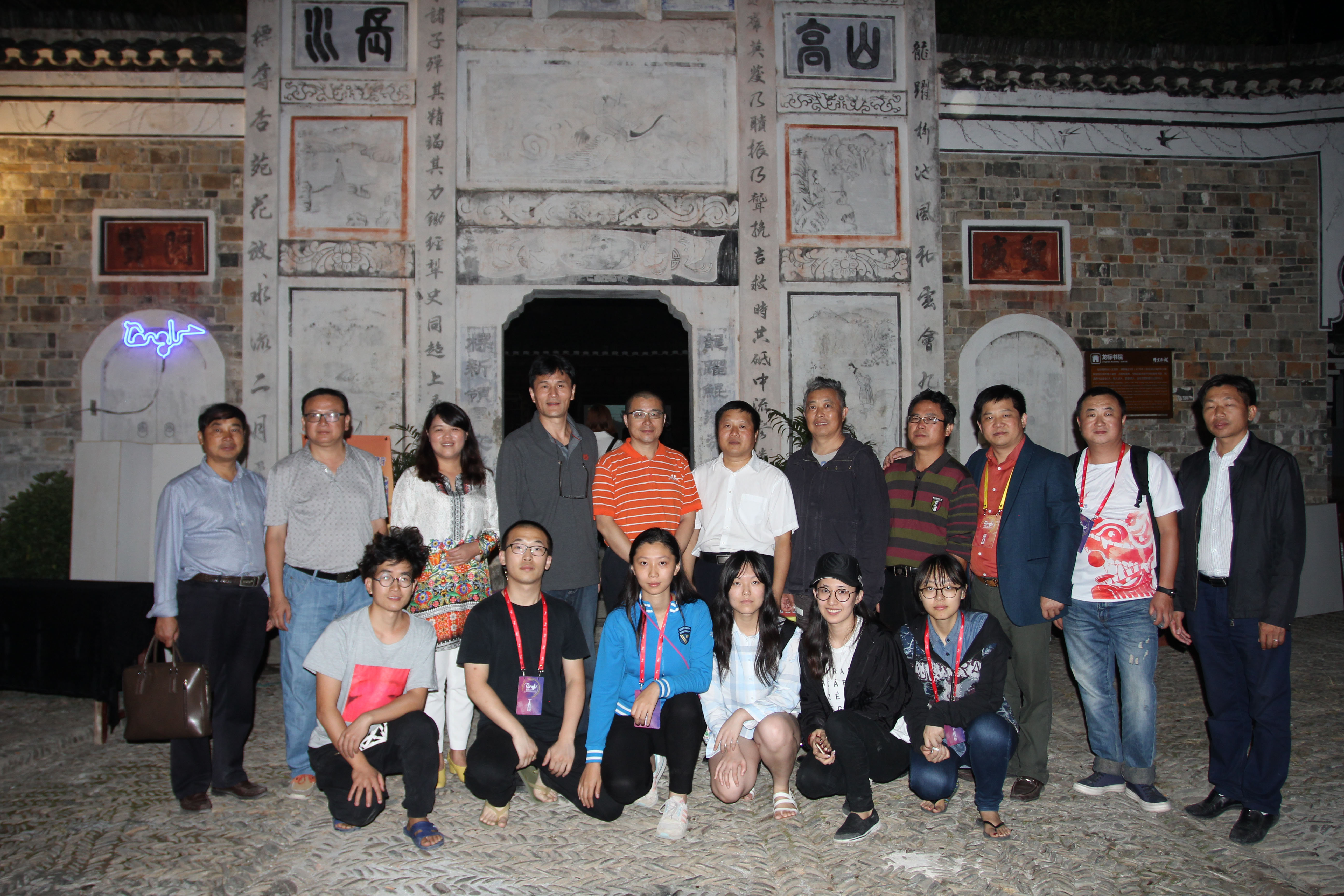 图为创意学院师生与当地政府领导、中国舞美学会领导合影