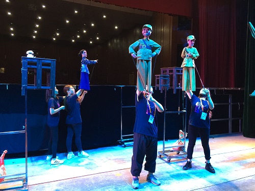 图为我校学生进行木偶表演