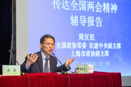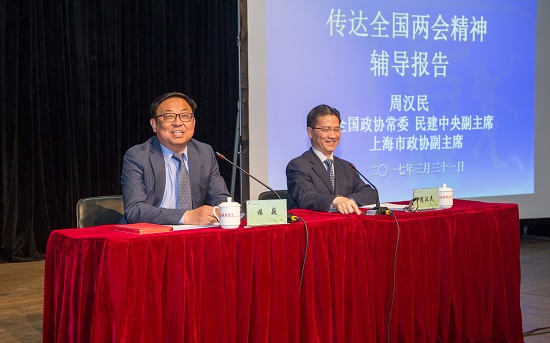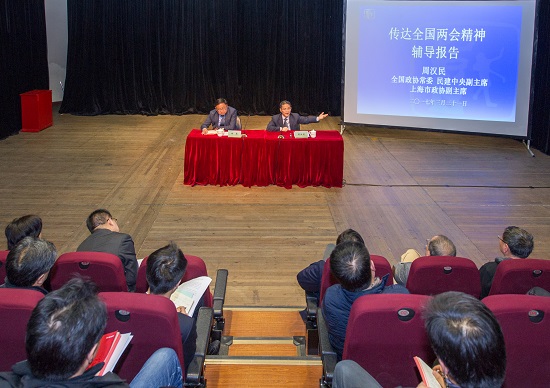 2017年3月31日下午,我校在上戏新空间召开中心组(扩大)理论学习会议,邀请了全国政协常委、民建中央副主席、上海市政协副主席周汉民教授就今年全国两会精神进行了专题辅导。
