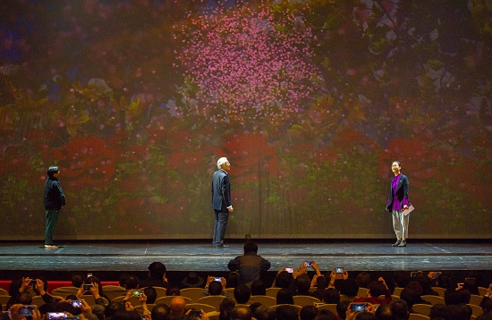 当晚,上海•静安现代戏剧谷艺委会成员、著名表演艺术家焦晃,中国文联副主席、上海•静安现代戏剧谷艺委会成员、著名表演艺术家奚美娟与著名导演田沁鑫共同启动了开幕仪式。仪式上,投影屏幕上的万朵鲜花在舞台上灿然绽放,现场近千名观众通过手机屏幕即时显示了相同的鲜花图案。台上台下花团锦簇,寓意着戏剧让城市更美好的本届现代戏剧谷主题——“锦”。随后,开幕大戏《狂飙》开演,也标志着5月5日至22日的戏剧盛会的隆重开演。