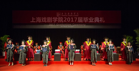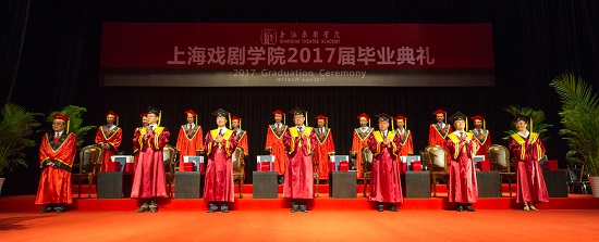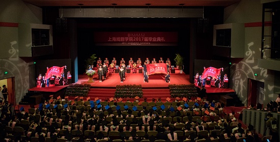 6月23日是上海戏剧学院2017届毕业典礼的日子,校园处处洋溢着欢庆的气息。上午9时,上戏实验剧院布置一新,气氛温暖热烈,庄重典雅,上海戏剧学院2017届毕业典礼在雄壮的国歌声中开始。