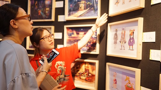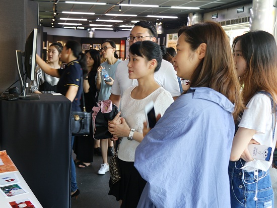 创意学院学生为观展嘉宾介绍作品