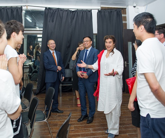 利蒂亚·科尼奥尔女士对我校有着特殊而深厚的情感,她说再次来到上戏就像回家一样。2013年,时任上戏表演系主任的龙俊杰老师访问希腊国立戏剧学院,与希腊国立戏剧学院签署协议,邀请他们选派一位优秀教师来给我校表演系做工作坊。于是,2014年,希腊国立戏剧学院委派利蒂亚·科尼奥尔(她当时是希腊国立戏剧学院的教授)给我校表演系13级内蒙班做了一周以古希腊戏剧为主题的工作坊,得到了热烈的反响。之后,龙老师邀请她于2015年再次来到我校,指导表12级排练了古希腊悲剧《阿尔克斯提斯》,再次获得成功。今年7月,利蒂亚·科尼奥尔以希腊文化与体育部部长的身份邀请上戏宫宝荣副院长访问希腊雅典,商议合作事宜。