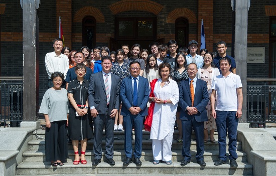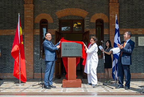 最后,部长女士和楼巍书记共同为上海戏剧学院“希腊戏剧研究中心”揭幕。参加活动的还有希腊驻上海总领事馆总领事VASSILIS XIROS先生,上海戏剧学院副院长宫宝荣、科研处处长吴爱丽、国际交流中心副主任张云蕾、表演系主任何雁、戏剧文学系主任刘庆等。(文:宗玉 图:佳奇 编辑:榕树)