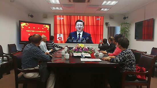 10月18日上午9时,我校离退休党总支组织总支委员和支部书记在我校老干部活动室收看党的十九大开幕式并且认真学习了习近平总书记的大会报告。