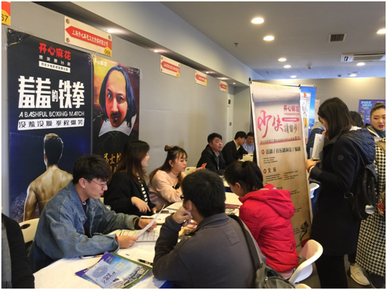 我校2018届毕业生就业推介会秋季场于11月24日下午13:30在上戏实验剧院举行,本次推介会由就业办主办,历时3个小时。本次推介会邀请到浙江华策影视股份有限公司、上海唯众传媒股份有限公司、上海灿星文化传播有限公司、上海文化广场剧院管理有限公司、上海耀客传媒股份有限公、南派泛娱有限公司、上海骑鲸客文化传播有限公司、上海市普陀区文化馆、上海木偶剧团有限公司、上海歌剧院、上海盛视天橙传媒股份有限公司、上海市嘉定区文化馆、中国福利会少年宫、电影频道(上海)影业有限公司、上海迪士尼度假区、上海开心麻花文化传媒有限公司、上海时代影响力影视有限公司、上海电影艺术职业学院、浙江横店影视职业学院、上海幻维数码创意科技有限公司、上海东方艺术中心管理有限公司、上海飞来飞去新媒体展示设计有限公司等80家用人单位到学校设摊招聘,用人单位涉及传媒公司、专业院团、文化影视公司、学校、剧院、文化馆等各领域,拟招聘人数约1254人,需求专业涉及主持、编导、灯光、舞美、戏文、表演、导演、舞蹈、戏表、创意等各专业。