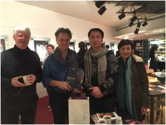 图为表演系主任何雁老师、表演系副主任肖英老师与英国皇家戏剧艺术学院院长爱德华先生(左二)、罗斯布鲁弗学院前院长迈克尔先生(左一)合影