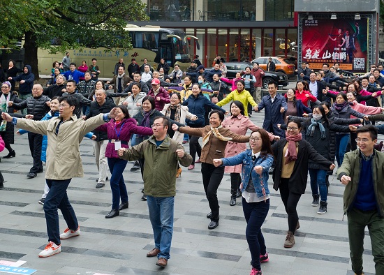 图为老师们精神抖擞地做广播操