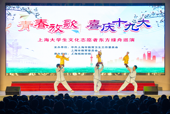 自2014年以来,为贯彻落实中共中央办公厅、国务院办公厅《关于实施中华优秀文化传承发展工程的意见》,进一步将中华优秀文化的培育、传承和创新融入学校思想道德教育的全过程,搭建文化交流展示平台,“青春放歌—国内文化交流与志愿服务活动”应运而生。在中共上海市教育卫生工作委员会、上海市教育委员会的领导下,由上海戏剧学院承办组织,联合上海音乐学院、华东师范大学、复旦大学、上海体育学院、东华大学、上海视觉艺术学院、上海电影艺术职业学院等高校,成立大学生文化志愿者团队,精心挑选各校经典品牌节目,组成一台既有优秀传统文化(如京剧、民乐、木偶、武术)、又有现代时尚冲击力(如服装造型秀)、兼具新潮国际范(音乐剧、管弦乐)和彰显青春活力(拉丁舞、花样跳绳)的高品质精彩文艺节目。