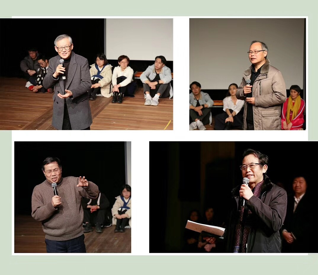 演出结束后,“百·千·万字剧”编剧工作坊创始人陆军教授进行了点评,他指出:在上戏新空间从未有过这样特殊的演出,其特殊性不仅体现为这是一次由非专业编剧和演员共同打造的演出,更在于这些编剧和演员绝大部份在今年7月11日前尚未接触过戏剧创作与戏剧表演,而所有参演的作品又都是限时限刻的命题创作。因此,这次演出具有非凡的意义,参与这次演出的每一位学员将肩负起在中小学培育戏剧新人的任务,并且,在不久的将来这些学员中必将会诞生几位能够产生影响力的剧作家,这才是“百·千·万字剧”青年编剧工作坊的终极意义。随后,上海市教育学会秘书长苏忱教授,上海戏剧学院姚扣根教授、张生泉教授也分别对此次展演进行了点评,他们勉励学员们继续追逐戏剧梦想,通过实践认真积累戏剧创作经验,在回到各自学校后积极将戏剧种子播撒到广大中学生心中。观看本次演出的还有“百·千·万字剧”编剧工作坊指导教师黄溪、李世涛两位老师,以及上海戏剧学院戏文系副主任徐煜教授、上海戏剧学院继续教育学院党支部书记尹永华等。