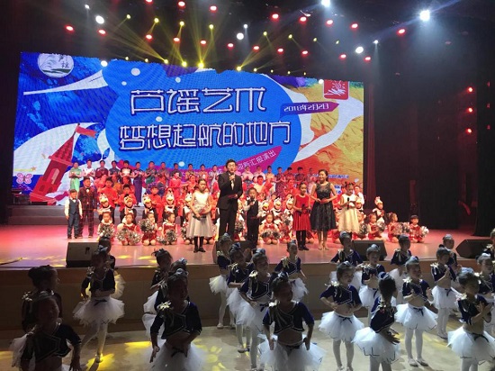 在中午用餐休憩过后,我们来到了位于崇明文化馆的风瀛洲剧场,参加了崇明践习基地的揭牌仪式并观摩了芦谣艺术团的汇报演出。本次的汇报演出大胆地采用少儿和业余学员为班底,他们真诚、稚拙而又生动的表演打动了在场的每一位观众,着实让人眼前一亮。在演出步入高潮之际,上海戏剧学院编剧学研究中心主任陆军教授与崇明区文广局副局长高新峰走上台前,共同揭开了印有“上海戏剧学院编剧学崇明践习基地”字样的铭牌,完成了授牌仪式,也标志着两方的合作将上升至一个新的台阶:崇明将为上戏学生们提供一片新的成长土壤,而上戏也将为崇明带去新的发展活力。