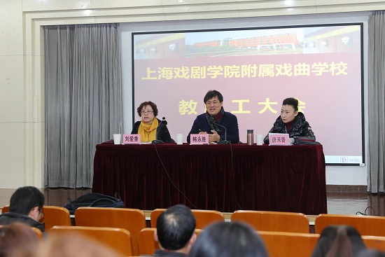 2018年2月27日上午9:30,冰消草长,正是初春好时节,2017-2018学年(第二学期)上海戏校教职工大会在图书馆报告厅顺利召开。校党总支书记韩永胜、副校长唐禾香出席会议,校党总支副书记刘爱香主持了会议。