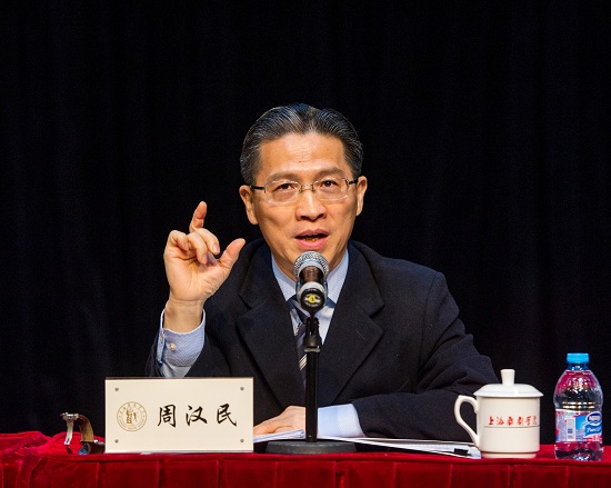 图为周汉民正在演讲